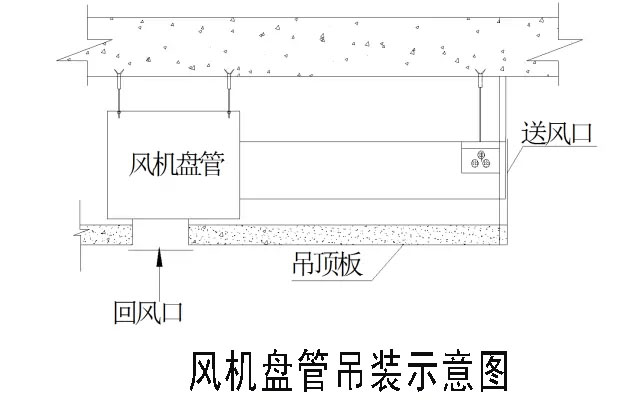 1.卧式风机盘管安装固定方式有两种:吸顶吊装和悬挂吊装;
