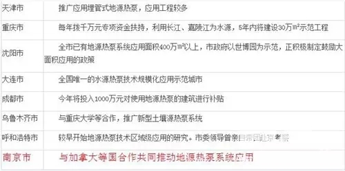 目前国内部分城市地源热泵技术应用推广情况: