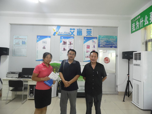 2014年8月23日河北承德华驰管道科技有限公司的王总和耿总来到我们山东德州天宇艾富莱空调设备有限公司莅临指导工作,下图是两位老总跟我们公司业务部的徐淑英经理的合影: