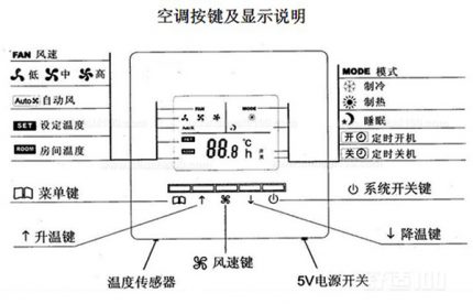 温控器可以设定温度、定时,并选择运行模式(制冷、制热、除湿、送风、睡眠等);无线遥控器用来在5米左右的距离内遥控主机温控器,同样能达到控制主机的目的。